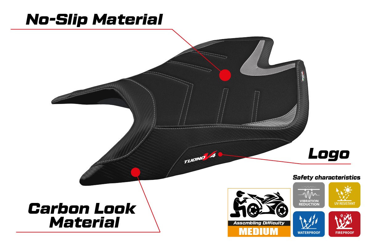 Aprilia Tuono V4 Factory 2021- poťah sedadla TPZ Nashua Ultragrip 1SL (silver)