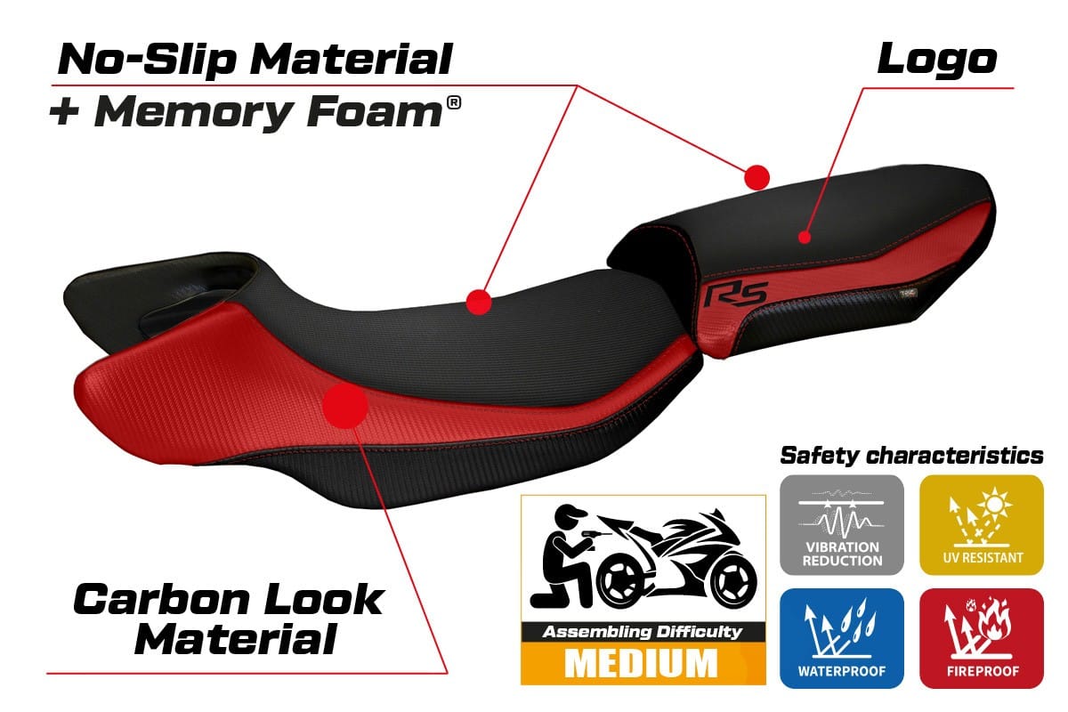 Platí pre poťahy Comfort systém - Vďaka pamäťovej pene o hrúbke 2,3 cm, sedadlo bude trochu vyššie. V skutočnosti po sadnutí na motocykel je poloha jazdca vyššia len o 5 - 7 mm.