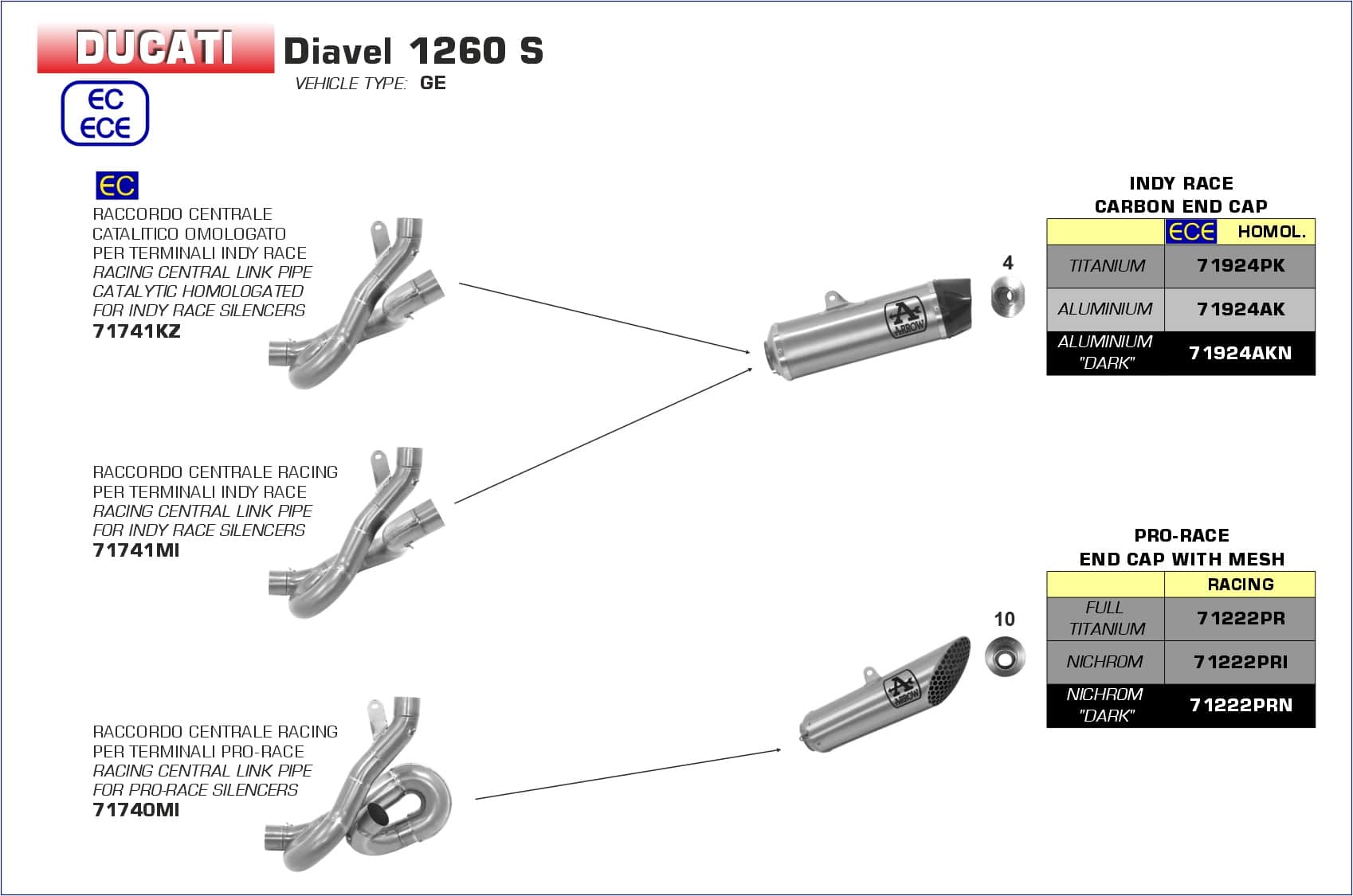 2019, 2020ARROW NÁHRADA KATALYZÁTORA LINK PIPE /CAT ELIMINATOR Ducati DIAVEL 1260 S 200006951-200285218