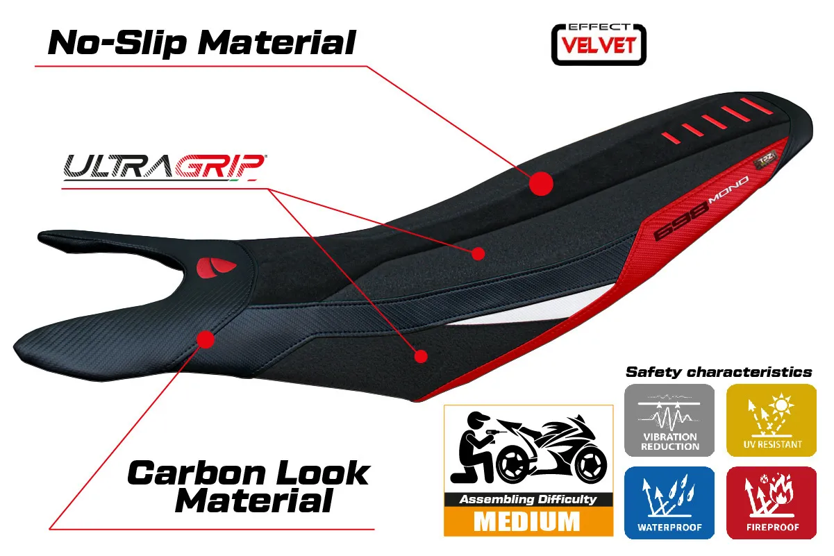 Ducati Hypermotard 698 Mono 2024- poťah sedadla TPZ Cairoli Special Color Velvet Ultragrip RDW (red-white)