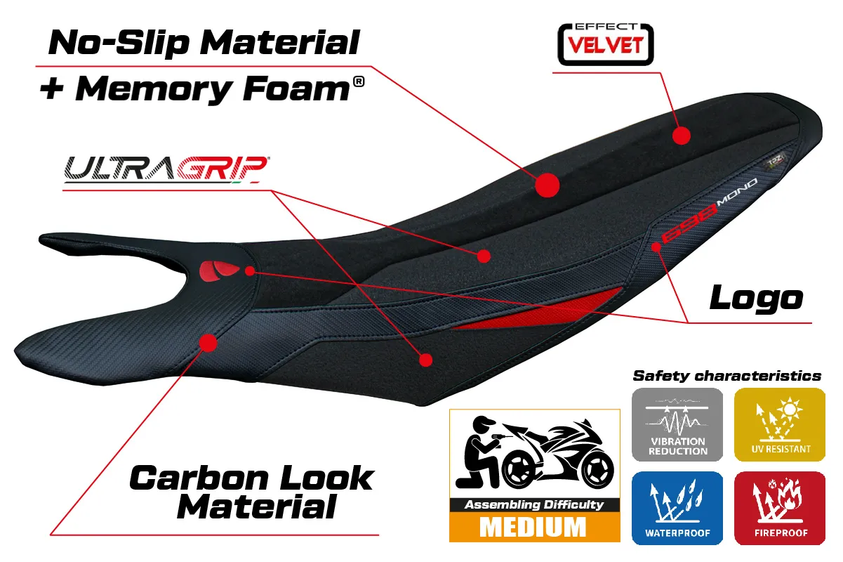 Ducati Hypermotard 698 Mono 2024- poťah sedadla TPZ Cairoli Velvet Ultragrip Comfort System