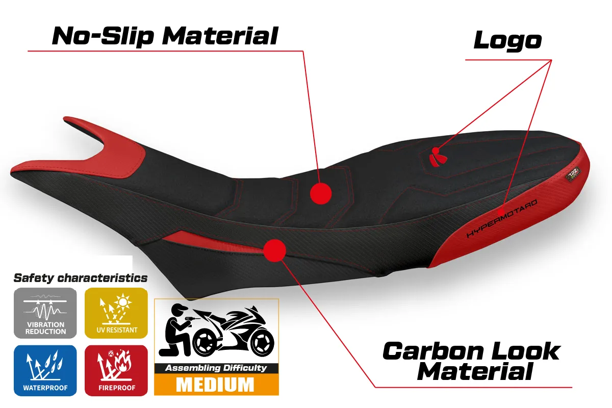 Ducati Hypermotard 950 2019- poťah sedadla TPZ Luna 1 Ultragrip 4RD (red)
