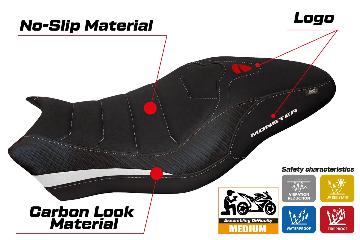 Ducati Monster 797 2017 - 2020 - poťah sedadla TPZ Piombino 2 Ultragrip 2WH (white)