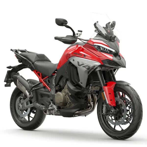 Titánový výfuk Akrapovic pre Ducati Multistrada V4 2025 dokonale kombinuje exkluzívny dizajn, špičkový výkon a prémiové materiály. Tento výfuk, vyvinutý v spolupráci s Akrapovičom, lídrom v oblasti vysokovýkonných výfukových systémov, je navrhnutý tak, aby zlepšil vzhľad aj výkon vášho motocykla a zároveň zabezpečil úplný súlad s predpismi.