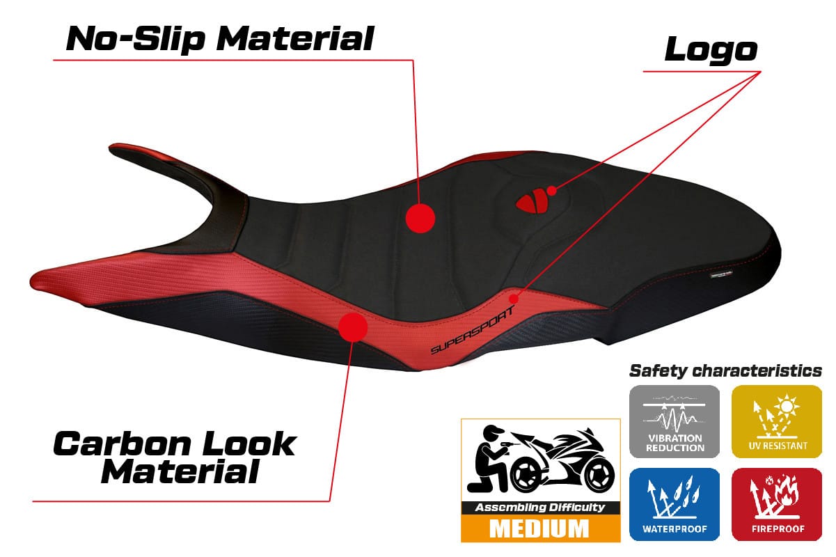 Ducati Super Sport 2017 - 2024 - poťah sedadla TPZ Pistoia 1 Ultragrip 4RD (red)