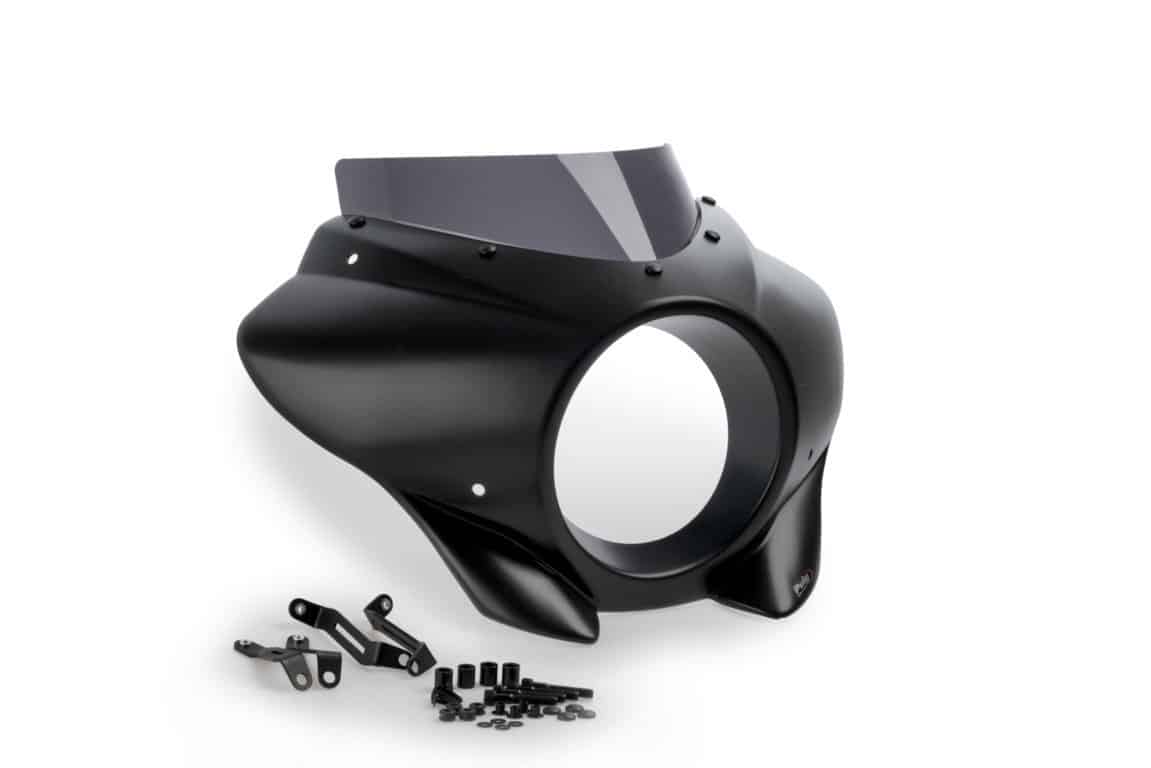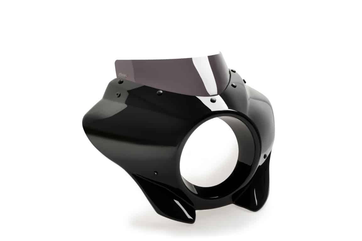 - Polokapotáž Mirage je univerzálnym doplnkom, pretože sa svojím dizajnom ľahko prispôsobí motocyklom s okrúhlym svetlometom, zakryje prednú časť okolo svetlometu a ochráni ho pred nečistotami a malými nárazmi.