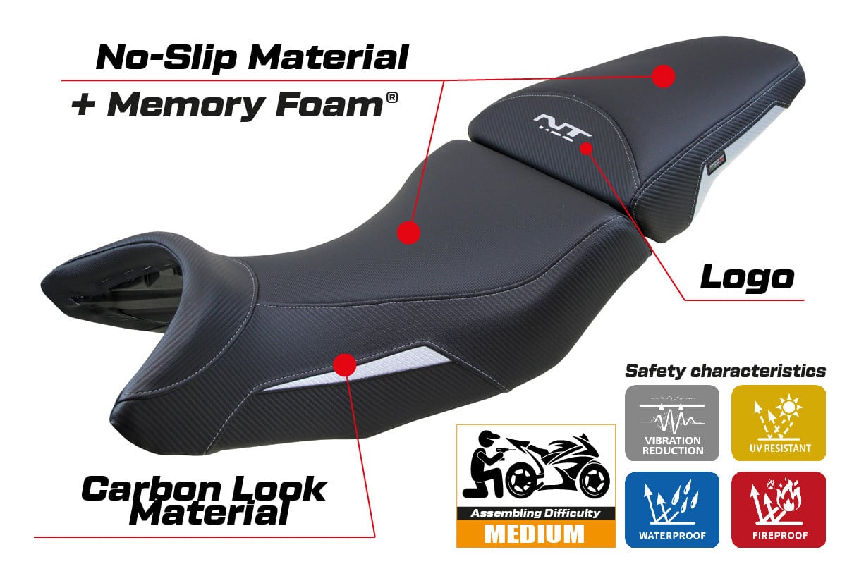 Platí pre poťahy Comfort systém - Vďaka pamäťovej pene o hrúbke 2,3 cm, sedadlo bude trochu vyššie. V skutočnosti po sadnutí na motocykel je poloha jazdca vyššia len o 5 - 7 mm.