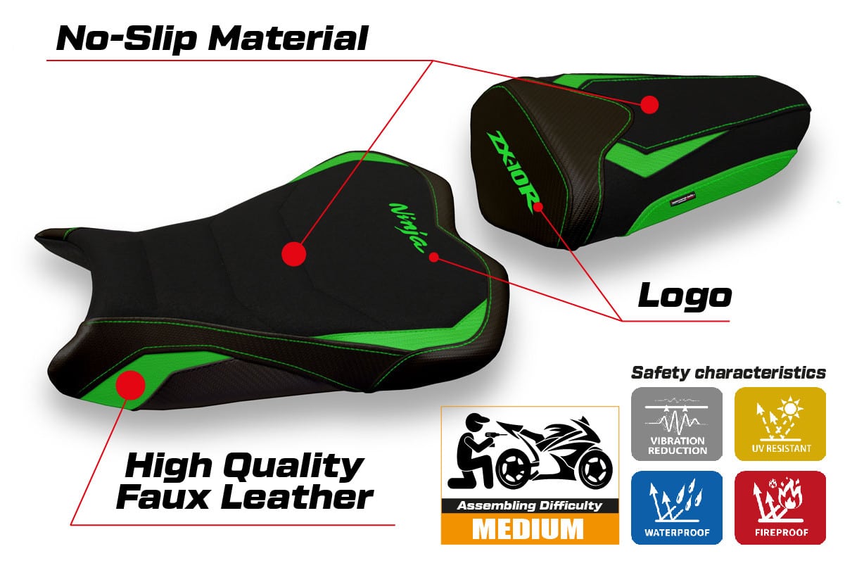 Kawasaki Ninja ZX 10 R 2008 - 2010 - poťah sedadla TPZ Quito 2 Ultragrip 4GN (green)