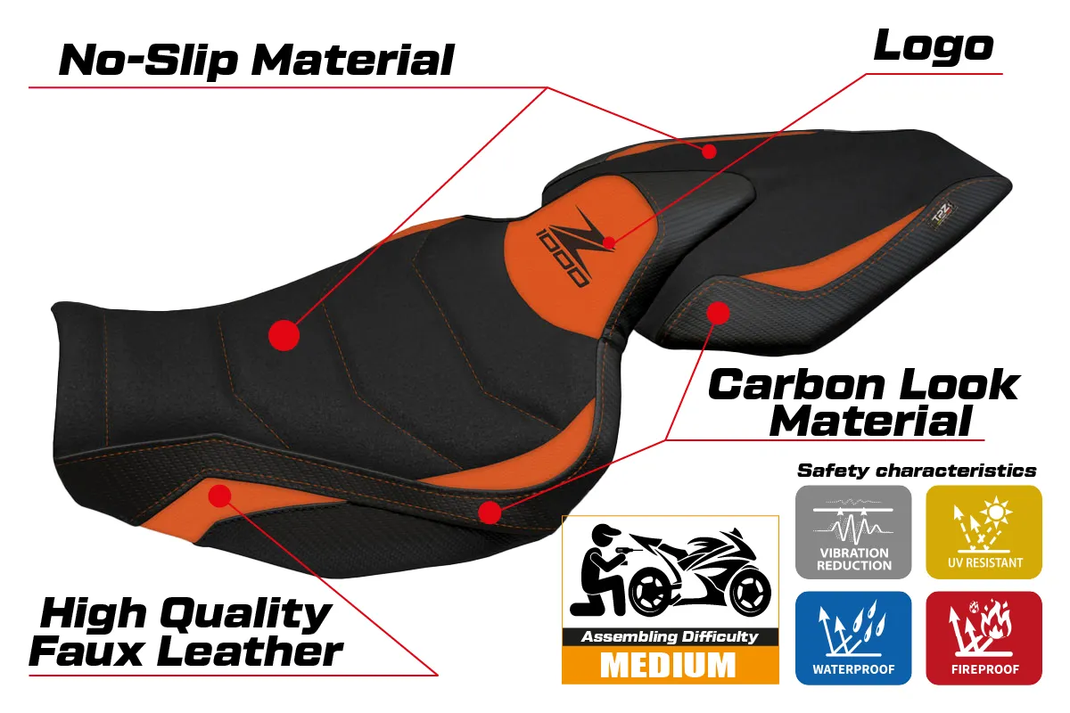 Kawasaki Z 1000 2014 - 2021 - poťah sedadla TPZ Hedemora 1 Ultragrip 1OR (orange)
