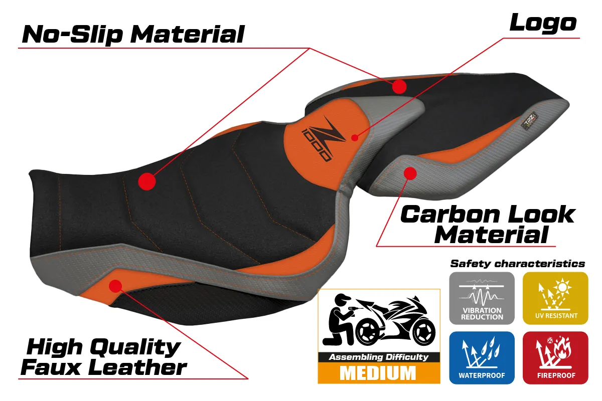 Kawasaki Z 1000 2014 - 2021 - poťah sedadla TPZ Hedemora 1 Ultragrip 2ORG (orange-grey)