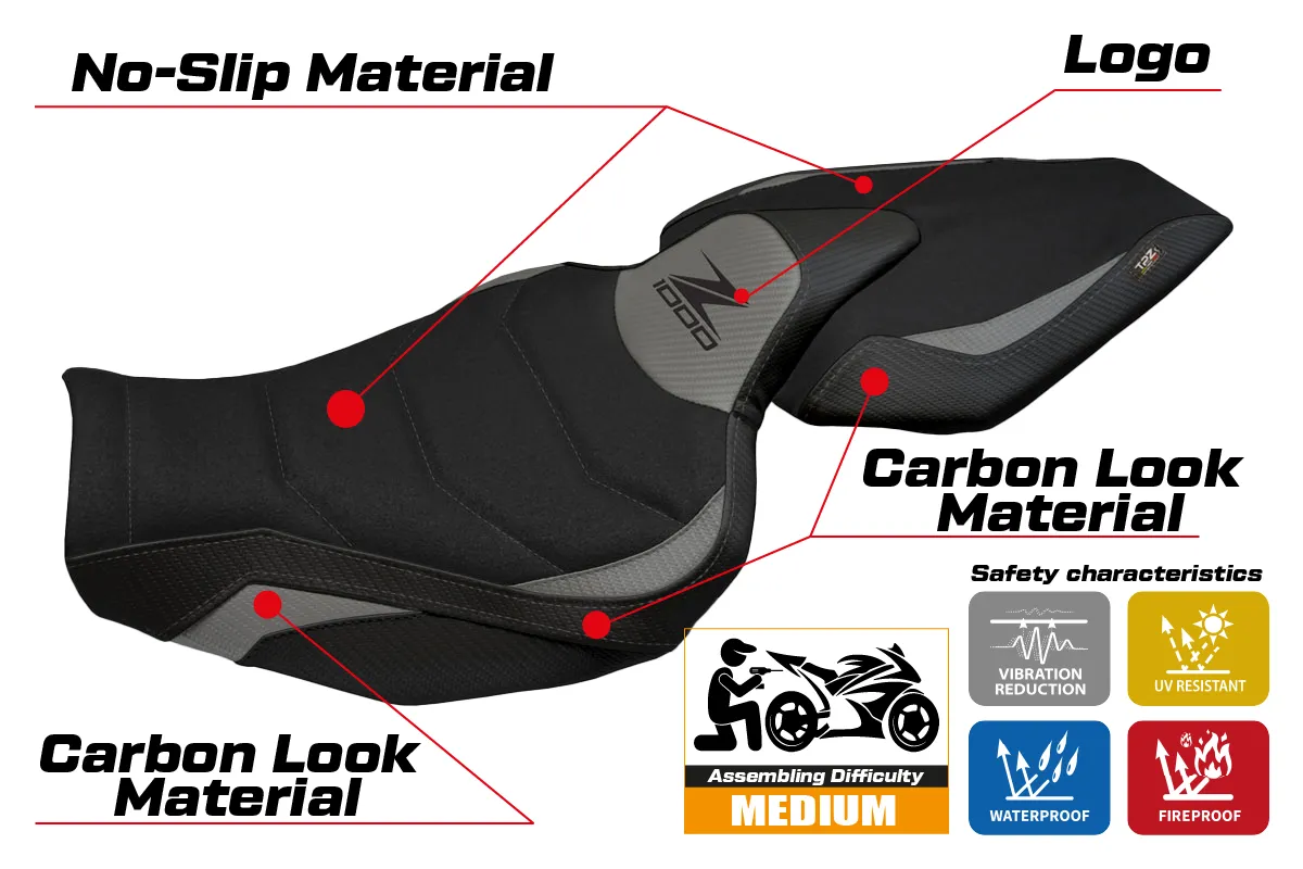 Kawasaki Z 1000 2014 - 2021 - poťah sedadla TPZ Hedemora 1 Ultragrip 3GR (grey)