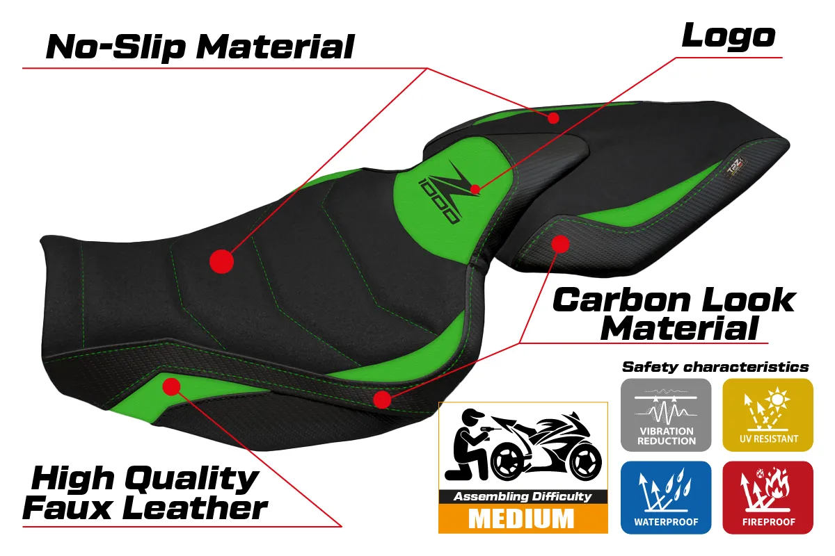 Kawasaki Z 1000 2014 - 2021 - poťah sedadla TPZ Hedemora 1 Ultragrip 4GN (green)