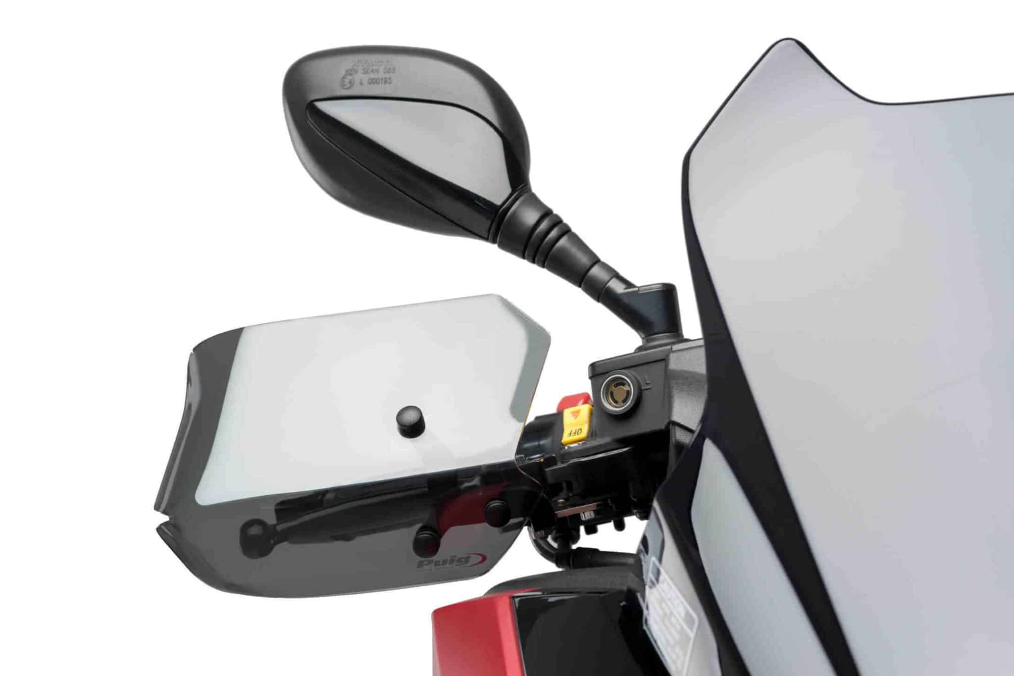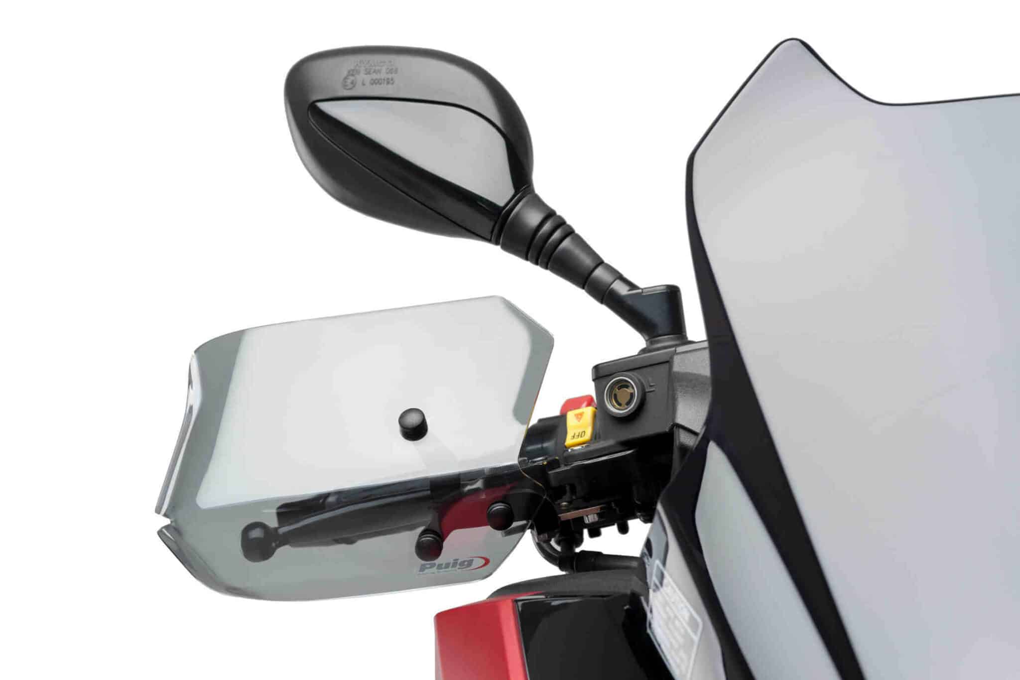 Chrániče rúk sú vyrobené z PMMA (Polymetylmetakrylátu), tvrdého materiálu s vysokou odolnosťou voči prípadnému poškriabaniu a nájdete ich v rovnakých farbách ako štíty PUIG.