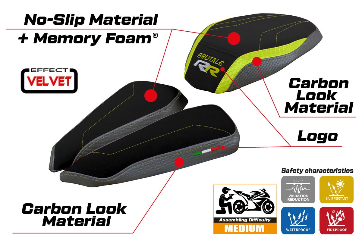 Poťahy sedadiel Tappezzeria Italia sú vyrobené z vysoko kvalitných 100 % PVC technických materiálov námornej kvality, potlačených rôznymi textúrami, ako je karbónový vzhľad, ultragrip, cordura, semiš, koža a ďalšie. Sú špeciálne navrhnuté pre lepšiu priľnavosť a štýl.