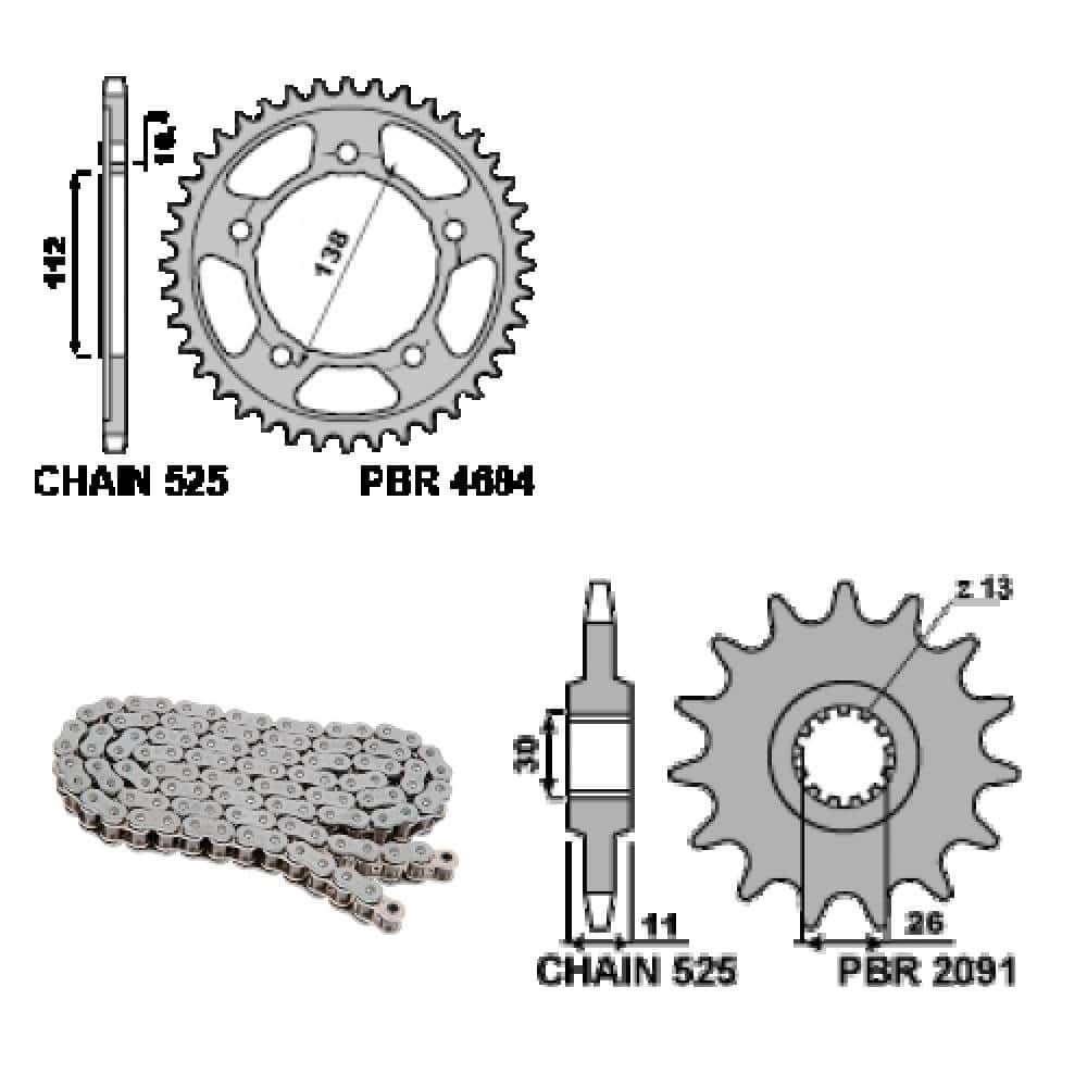 2015 a menej, 2016, 2017, 2018, 2019, 2020, 2021, 2022, 2023, 2024, 2025, 2026YAMAHA YZF-R1M - PBR reťazová sada 16 / 41 / 525 EK2851G