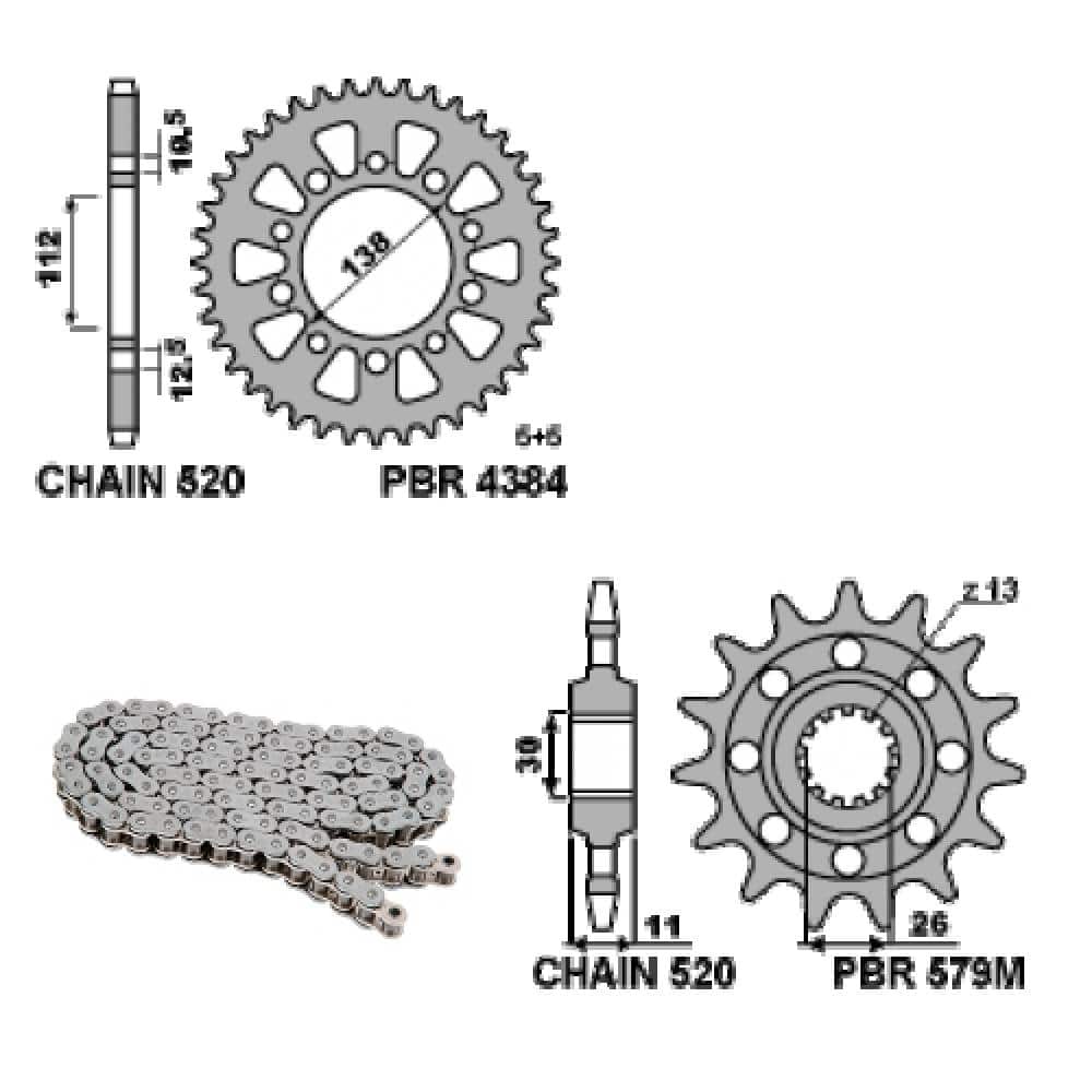 2015 a menej, 2016, 2017, 2018, 2019, 2020, 2021, 2022, 2023, 2024, 2025, 2026YAMAHA YZF-R1 - PBR reťazová sada 16 / 41 / 520 EK2852G