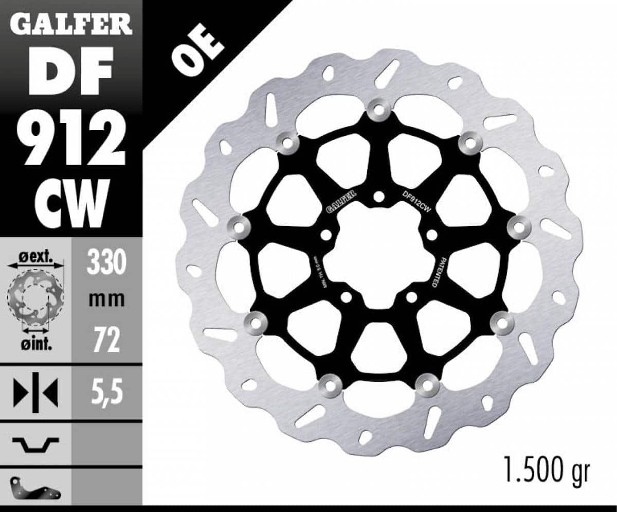 2015 a menej, 2016, 2017, 2018, 2019, 2020, 2021, 2022, 2023, 2024, 2025, 2026Ducati SCRAMBLER FULL THROTTLE/ ICON/ NIGHTSHIFT GALFER plávajúci predný brzdový kotúč DF912