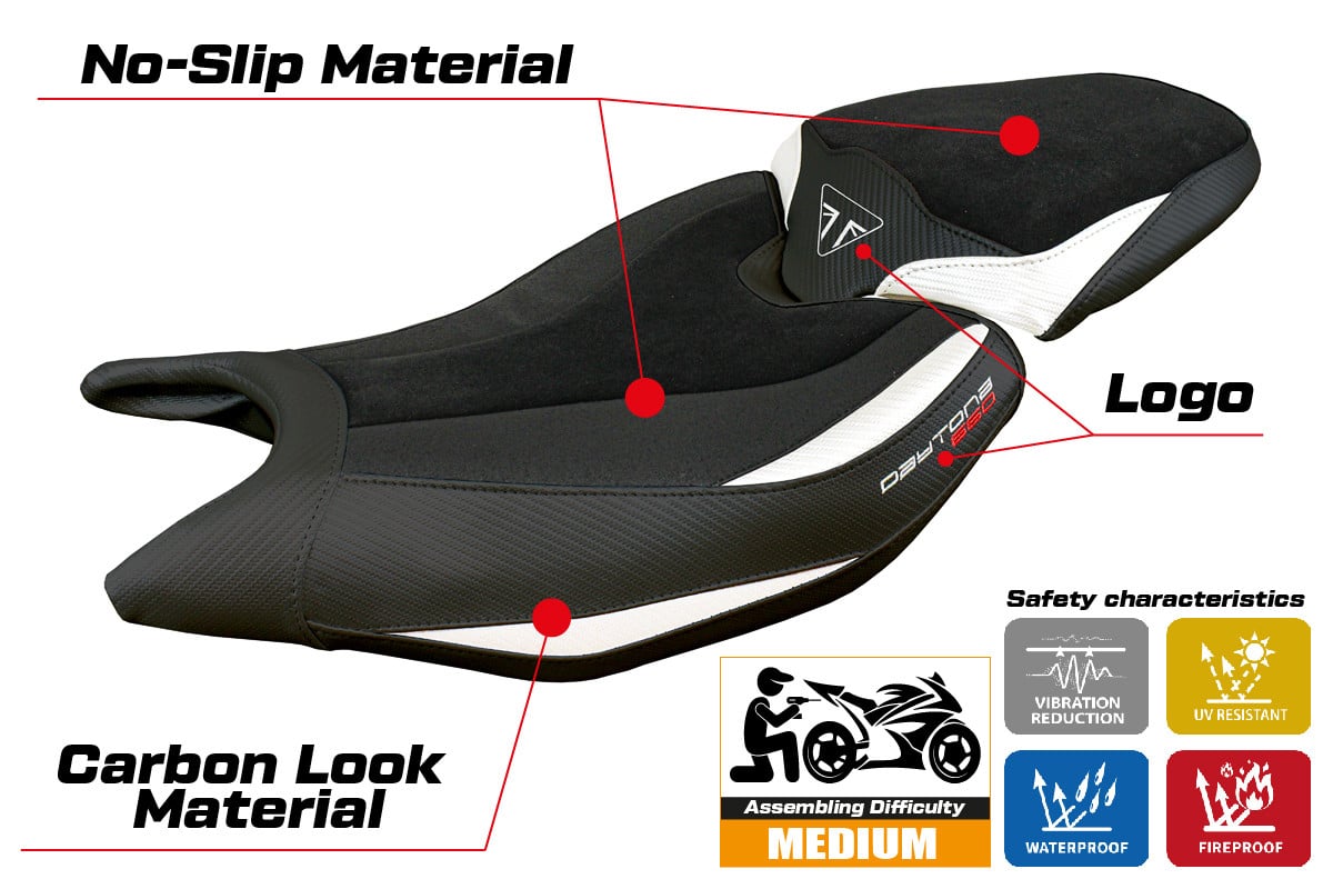Triumph Daytona 660 2024- poťah sedadla TPZ Reims Velvet Ultragrip WH (white)