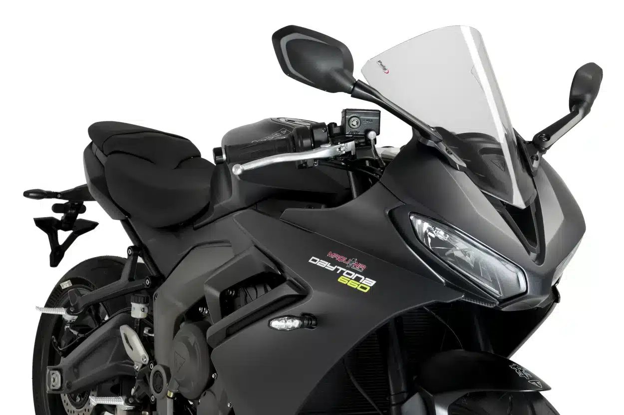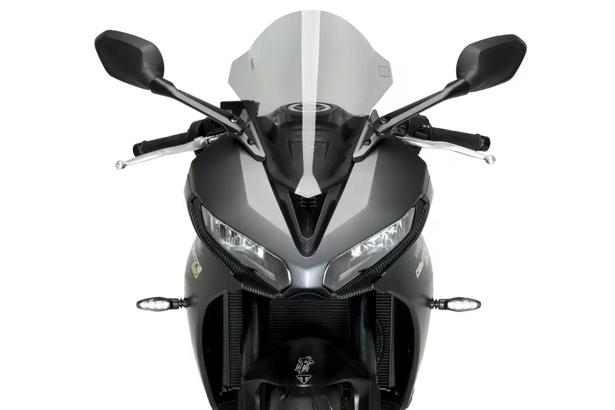 Štíty R-Racer sú navrhnuté tak, aby ste mali perfektný výhľad a sú aerodynamicky efektívnejšie ako sériové štíty. Testujú sa vo virtuálnom aerodynamickom tuneli, aby sa zlepšil aerodynamický koeficient (Cx) a vďaka vyššej výške odkláňajú vietor, ktorý by inak zasiahol prilbu a ramená jazdca.