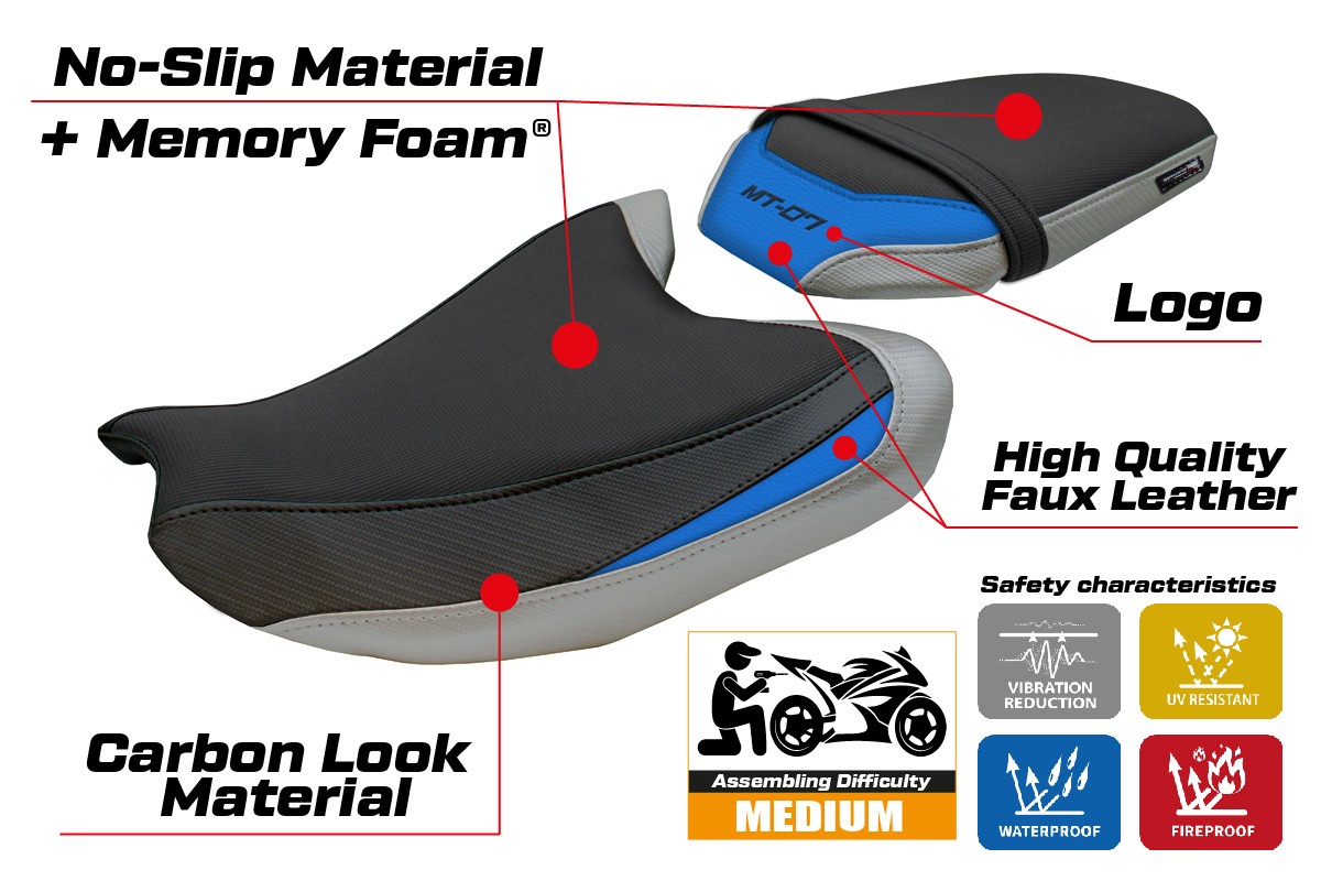 Poťah sedadla je navrhnutý tak, aby ponúkal dokonalú kombináciu štýlu a odolnosti, čím zabezpečuje stabilnejšiu a bezpečnejšiu jazdu za všetkých podmienok.