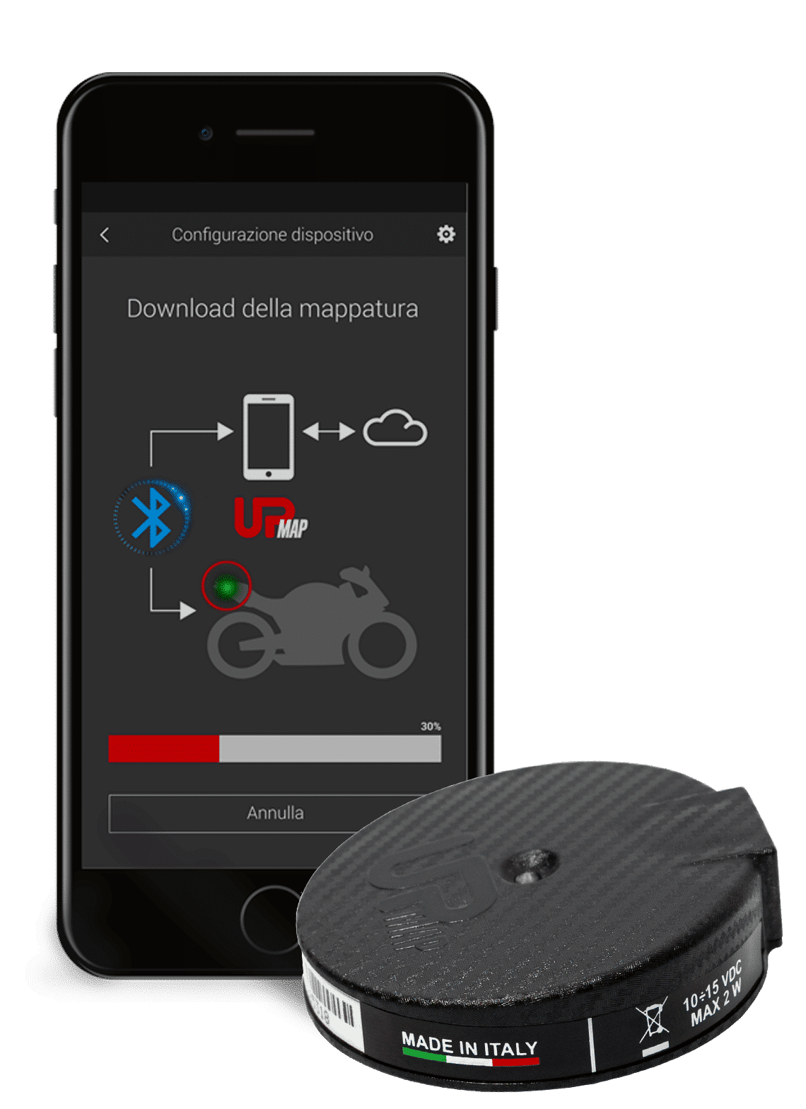 Zariadenie T800+ UpMap sa pripája k motocyklu pomocou diagnostického kábla a umožňuje vám zažiť mapovanie optimalizované a testované našimi odborníkmi.