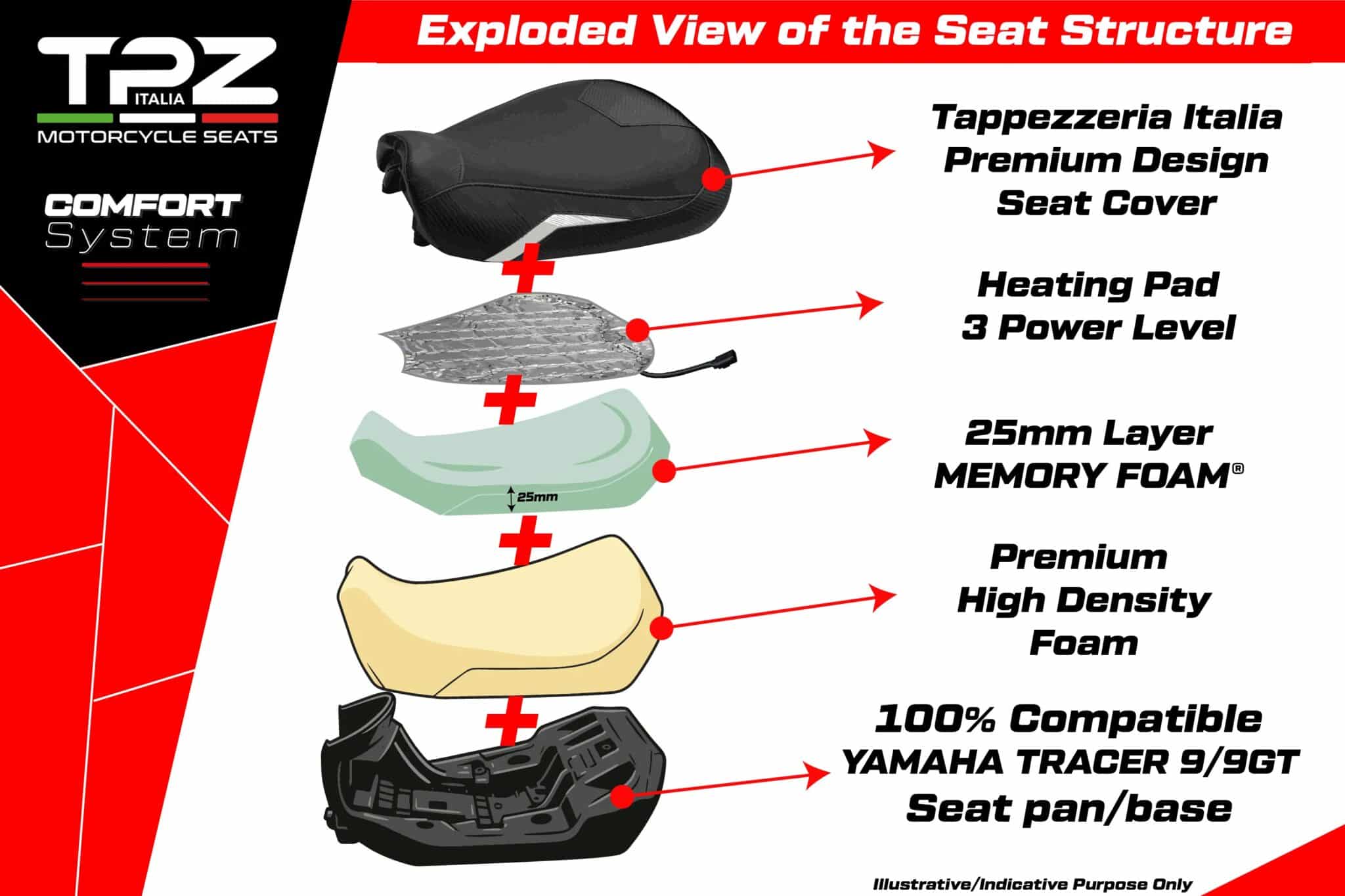Vylepšite si svoj Yamaha Tracer 9 / 9 GT 2021-2024 s vyhrievaným kompletným sedadlom TPZ Italia: technológia, remeselné spracovanie a najvyššia úroveň pohodlia!